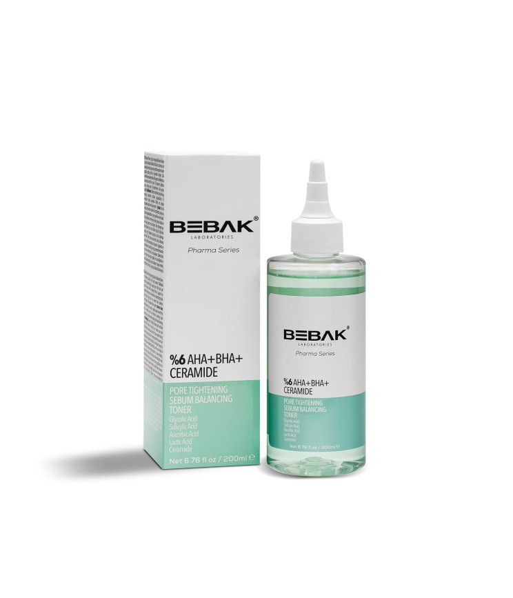 Формула шикарного тонера-протектора BEBAK на основі цілого коктейлю з корисних кислот допомагає запобігти утворенню вугрів, проникаючи у верхній шар епідермісу та звужуючи пори завдяки м’якій відлущуючій дії. Тонер підтримує регенерацію шкіри, захищає від старіння, а також дозволяє уникнути проблем, що виникають через ослаблений шкірний бар’єр.