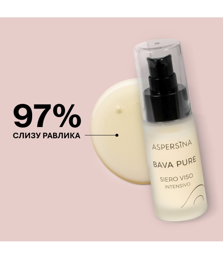 Лінійка для догляду за обличчям Aspersina пропонує великий вибір високоякісної косметики, де кожен продукт є справжнім еліксиром краси, призначеним для оздоровлення всіх типів шкіри. Інтенсивна сироватка BAVA PURE з дуже високим вмістом муцину равлика (97%) активно зволожує і живить вашу шкіру, підтримує її тонус. Продукт помітно вирівнює та освітлює тон обличчя.