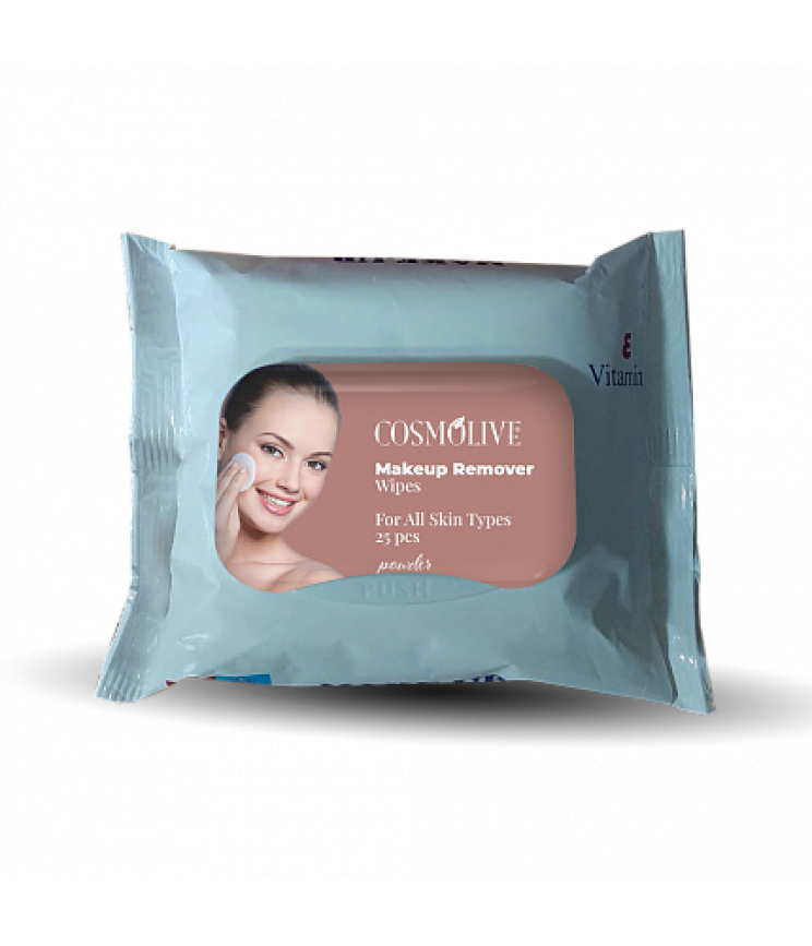 Вологі серветки для зняття макіяжу COSMOLIVE білі, 25 шт