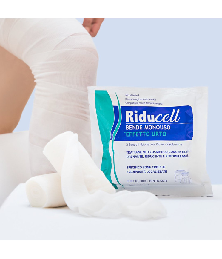 Тканинні бандажі Riducell Effetto Urto - це професійна безболісна косметична процедура, яку можна проводити самостійно вдома, у повному комфорті.