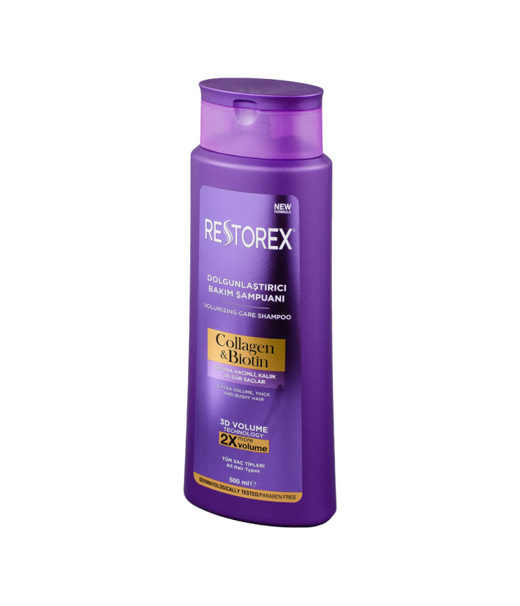 | Застосування | Для зовнішнього використання нанести достатню кількість шампуню на вологе волосся та шкіру голови. Помасажувати до появи піни, потім змити теплою водою. Для кращого очищення повторити процедуру. Підходить для частого використання. Для максимальних результатів рекомендується використовувати інші засоби серії по догляду за волоссям Restorex Collagen&Biotin. |