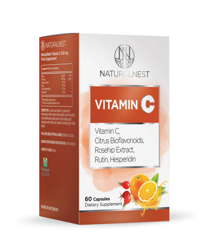 Дієтична добавка «Вітамін С 500 mg» NATURALNEST, 60 рослинних капсул