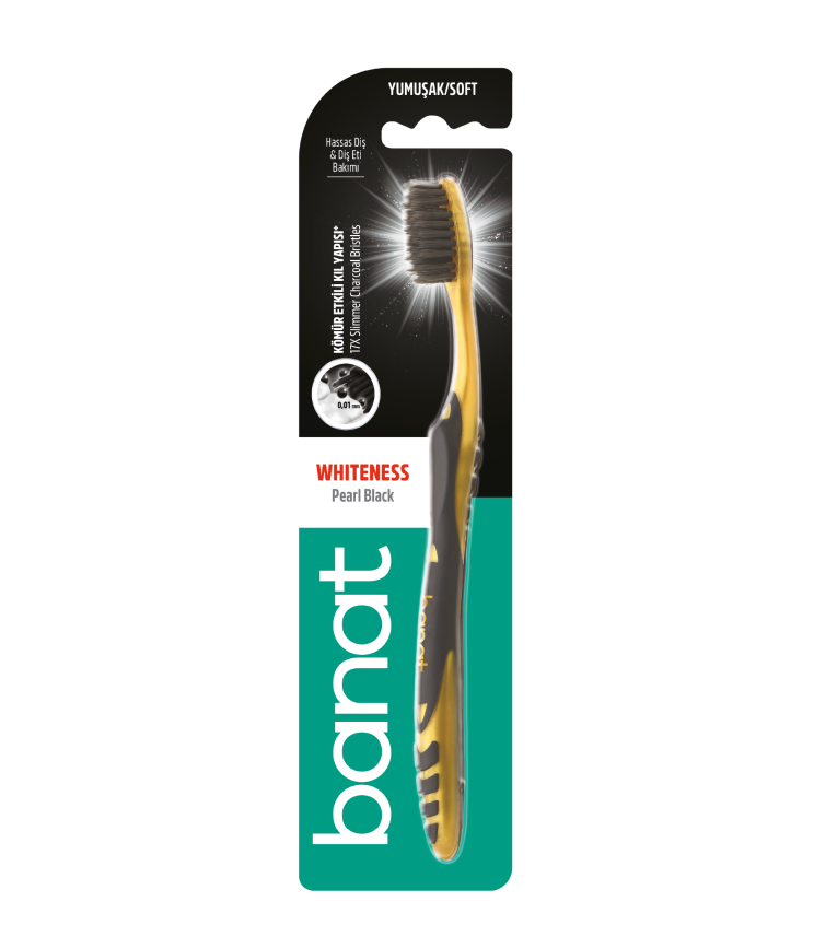 Надзвичайно м’яка щетина зубної щітки Acrobat Black Pearl забезпечує комфортне чищення чутливих зубів і ясен. Кожна щетинка містить активоване вугілля, яке швидко «уловлює» бактерії та запобігає їх розмноженню. Зубна щітка BANAT гарантує досконале очищення не лише поверхні зубів, а й міжзубного простору завдяки тоншій формі щетинок на кінчиках. Спеціальний очисник язика допомагає позбутися бактерій. Оригінальна роздвоєна конструкція ручки для зручного прикріплення на край стакану або органайзеру зберігає щітку чистою через відсутність контакту з іншими щітками. Зубна щітка Acrobat Black Pearl підходить для щоденного використання для підтримки здоров’я порожнини рота.